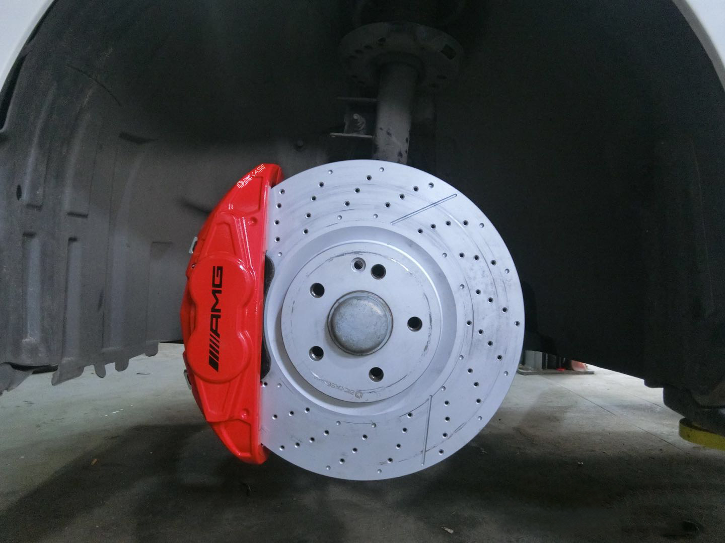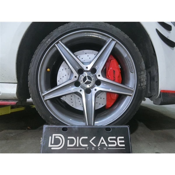 AMG卡鉗的改裝的標志象征著性能的升級,小小的改動,大大的提升,AMG奔馳的尊享身份不滿足于此,或是為了完整度,車主又打算在這輛車的基礎上直裝330mm的加大盤打孔加劃線的剎車盤。